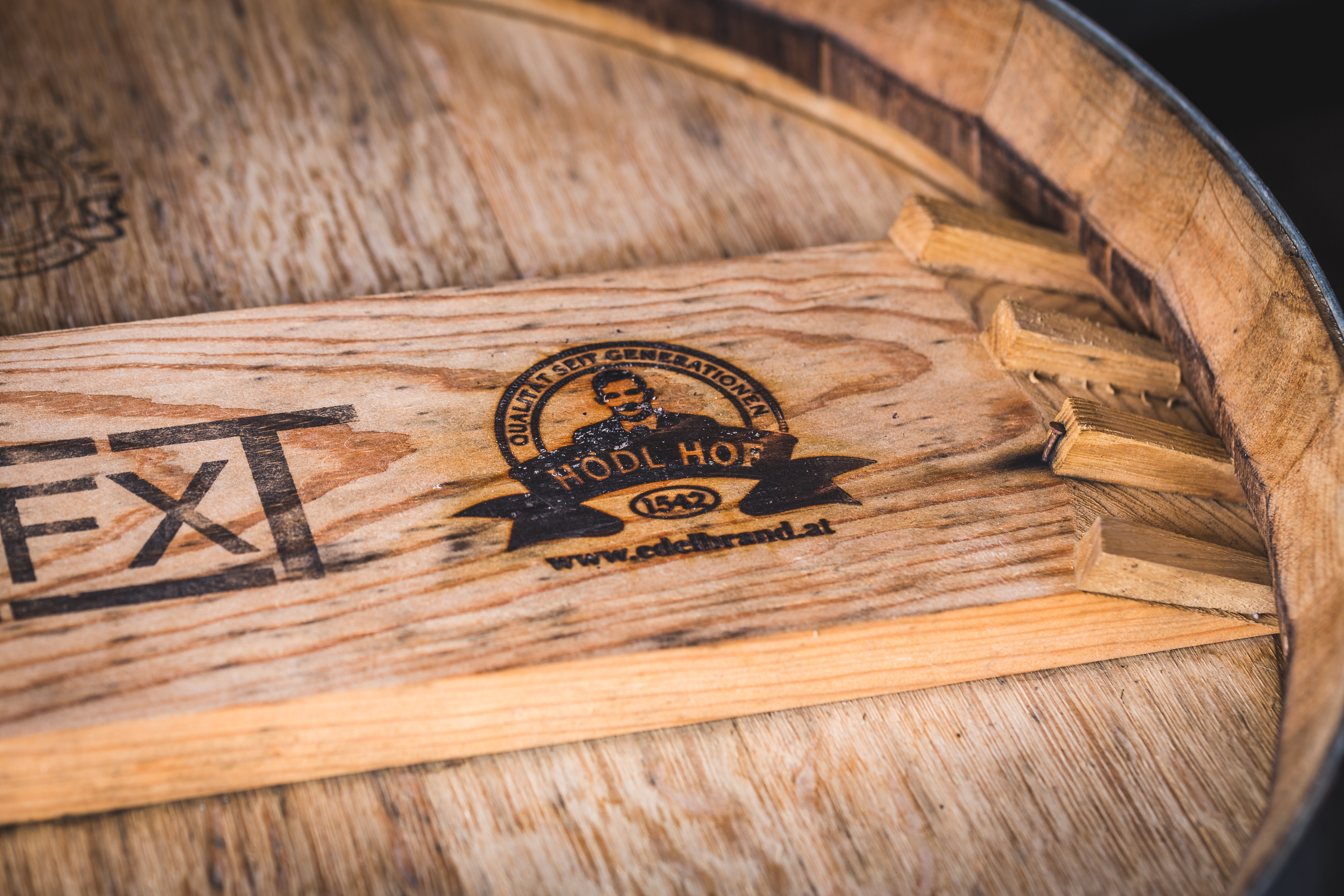Nur die besten Destillate werden für unser Fasskeller-Sortiment ausgewählt. Wir verwenden ausschließlich Eichenfässer, variieren jedoch die Toastgrade und nutzen Fässer mit unterschiedlichen Vorbelegungen. So erhalten unsere Schnäpse einzigartige Aromenprofile. Unsere Destillate reifen je nach Fass und Toastgrad zwischen einem halben Jahr und zwei Jahren. Bei neuen Eichenfässern ist die Reifezeit kürzer, da sie intensiver Aromen abgeben. Ältere Fässer benötigen dagegen mehr Zeit, um den gewünschten Geschmack zu entwickeln. Sobald die Schnäpse ihre perfekte Reife erreicht haben, werden sie füllfertig gemacht. Durch unsere spezielle „Typage“, ähnlich der „Dosage“ beim Sekt, werden sie besonders mild und fruchtig. Diese Typage besteht ausschließlich aus natürlichen Zutaten wie Fruchtsäften, Dörrobst und Auszügen aus den Obstkulturen und Wäldern unserer Region. Die genaue Zusammensetzung bleibt unser Geheimnis.